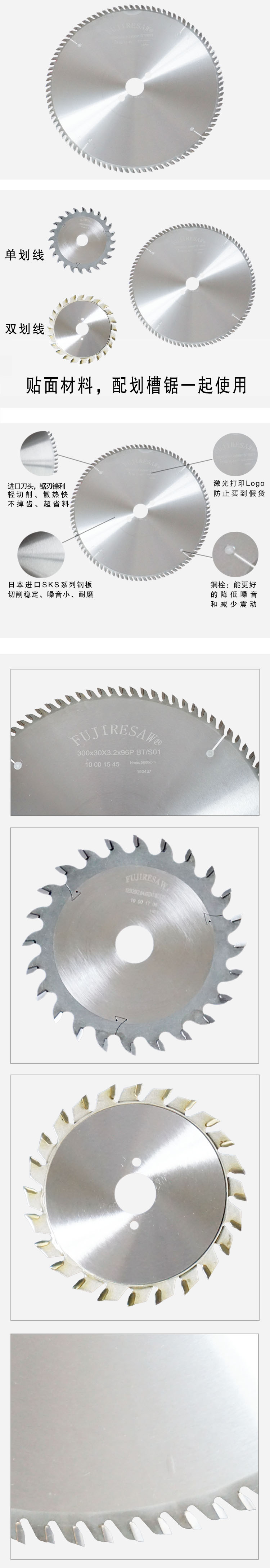 特點:鋸片適于切割35mm以下硬質貼面刨花板、密度板、多層板。